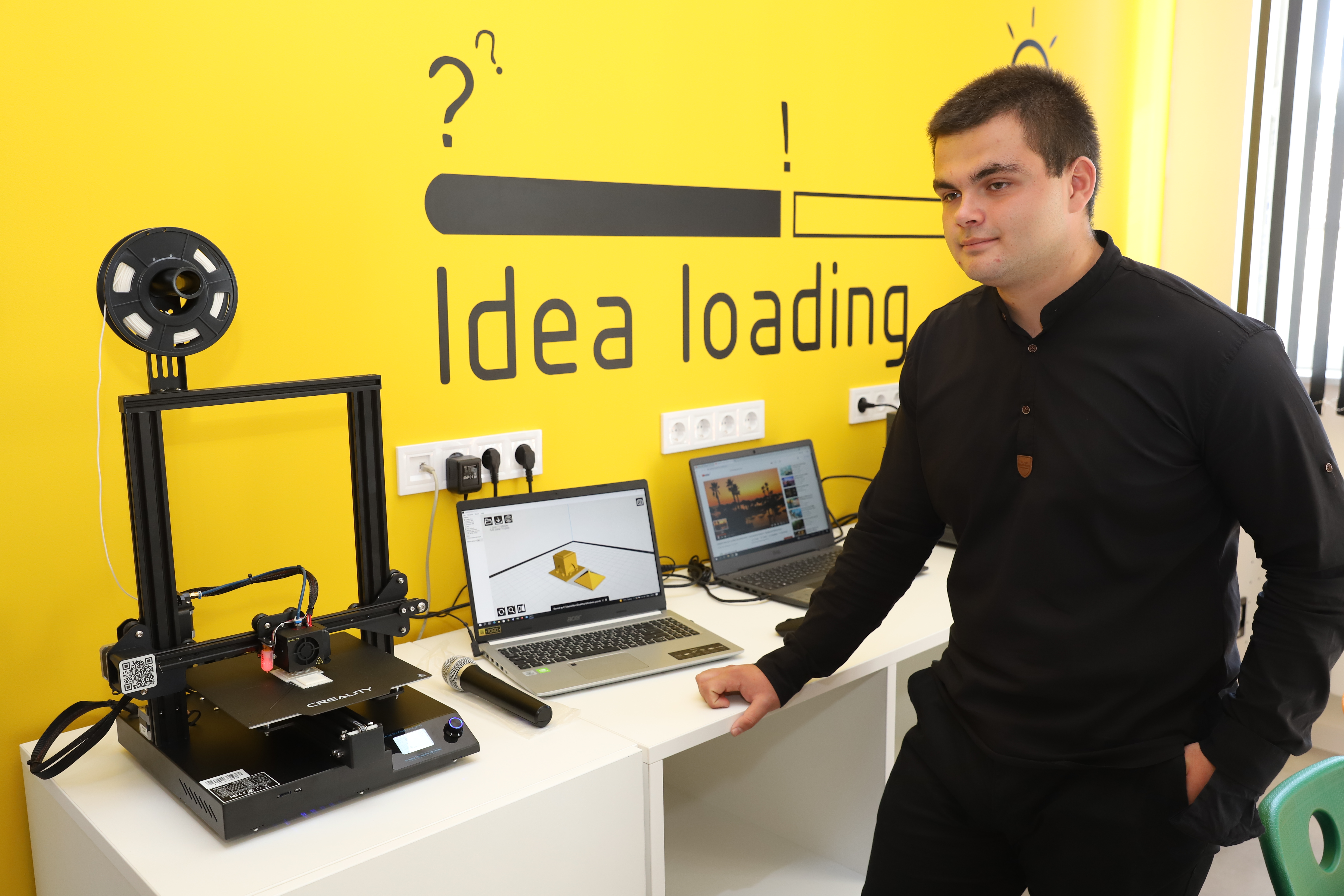 Още с изграждането на Центъра преминахме 16 часа специализирано обучение. Успяхме да разгледаме принципа на 3D моделирането, дизайна и физическото проектиране. Учихме как да изберем от различни материали най-подходящия за дадения проект. Ето този 3D принтер – с подобни, разбира се, много по-големи и мощни, но работещи на същия принцип, се правят и авточасти, и изкуствени зъби.
