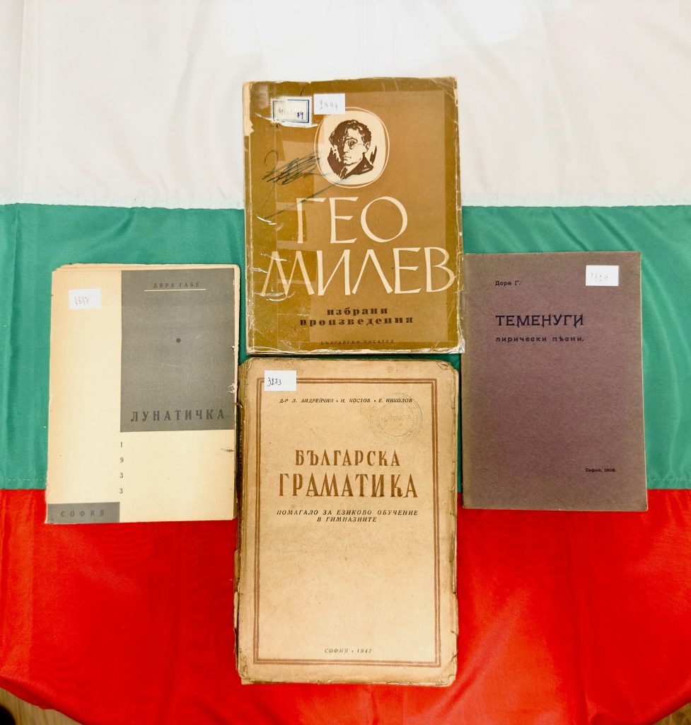 Първата женска стихосбирка в българската литература – „Теменуги“ на Дора Габе. Книгата е с личен автограф на поетесата.