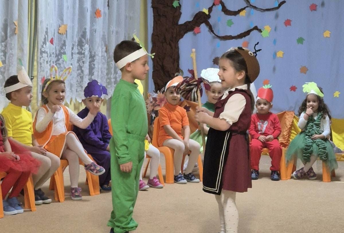 Децата от група „Звънче“ при Детска градина „Пролетна дъга“ в Берковица изпращат есента с вълнуващ спектакъл под наслов „Есенна забава в горската дъбрава“