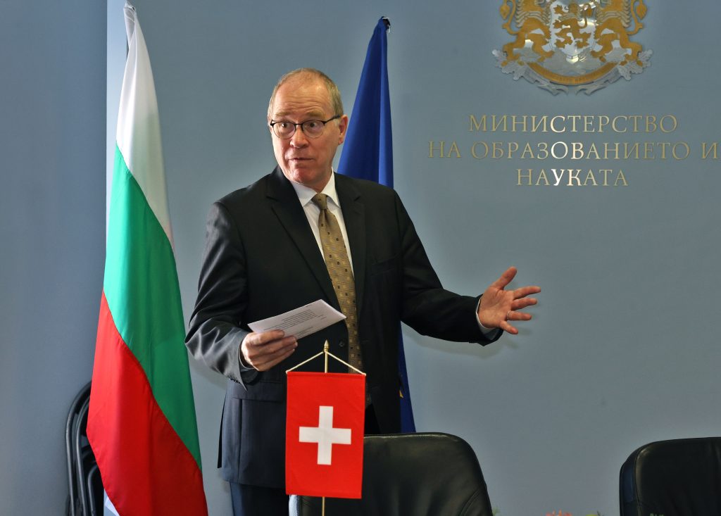съобщава Пресцентърът на МОН. Подписи под документа положиха служебният министър на образованието и науката проф. Галин Цоков и Н.Пр. Раймунд Фурер – посланик на Конфедерация Швейцария в България.