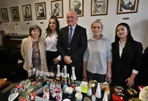 Възпитаниците на Професионалната гимназия по керамика в Елин Пелин представиха красиви чаши, подноси, декоративни ябълки и висулки. Всички те бяха изящно и прецизно изрисувани.