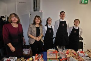 На солени и сладки изкушения бяха заложили и учениците от Софийската професионална гимназия „Княгиня Евдокия“. Младежите от Технологичната гимназия „Мария Кюри“ в Перник пък представиха на щанда си красива коледна украса – джуджета, играчки за елха, венци и красиво украсени бутилки за вино.