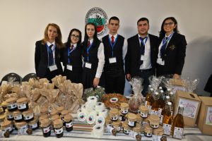 Домашен кашкавал, сирене, вино, различни видове сладко, ябълков сок и топла питка посрещна гостите на щанда на Професионалната гимназия по механизация на селското стопанство в Гоце Делчев.