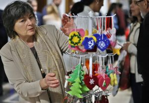 Бяха изложени още ръчно правени бижута, брошки, разделители за книги, поставки за горещи напитки и много други. Усмивка предизвикаха и белите плюшени мечета, облечени в червен костюм като Дядо Коледа. Те бяха поставени на щанда, за да привличат посетители.