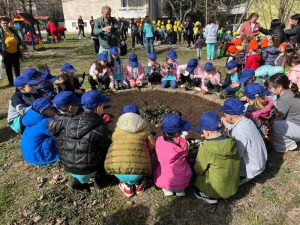 Деца, учители и родители облагородяват двора на ДГ „Снежанка“ в Русе с цветя, храсти и дръвчета