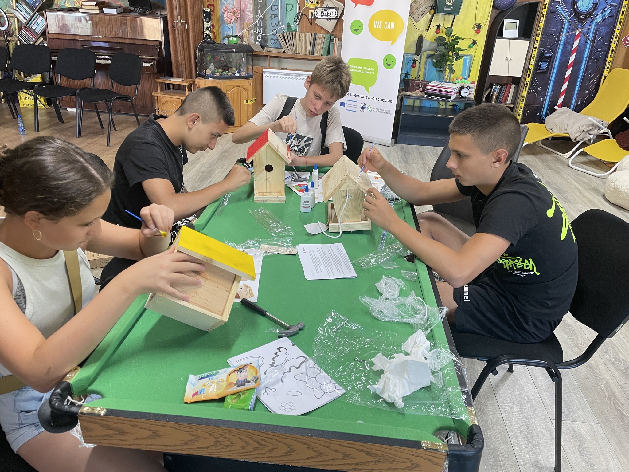 В организираната екоработилница учениците изработват къщички и хранилки за птици.