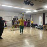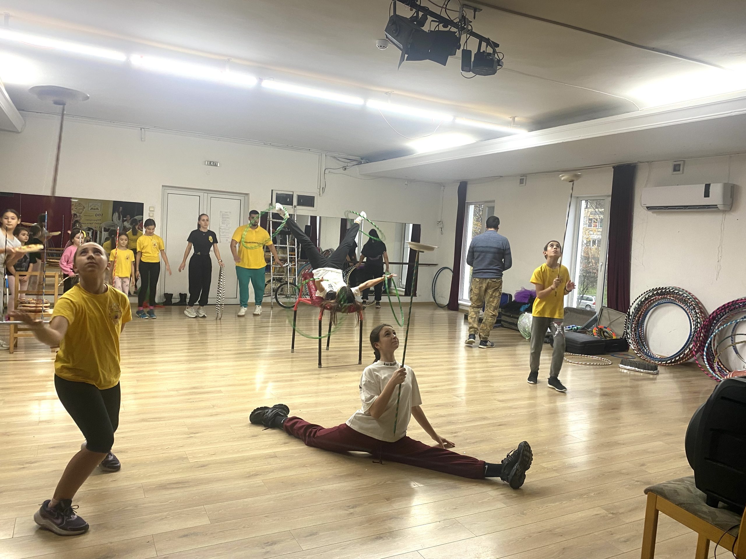 Репетициите са предимно в събота и неделя. Ако отидете, първо ще чуете музиката, после ще я последвате и когато отворите вратата на залата, ще разберете. Всички са там и отработват изпълненията си. Жонглират, карат колело с една гума, ходят върху кокили, въртят обръчи, правят фокуси или просто танцуват в светлини. Помагат си един на друг и често се подкрепят дори само с поглед. Такова е цирковото изкуство. За да го видиш на сцената, трябва да знаеш, че преди това група от малки до големи създават едно семейство. Спазват дисциплина, повтарят многократно едно и също движение и накрая се изправят изморени, но доволни, за да се поклонят с усмивка на публиката.
