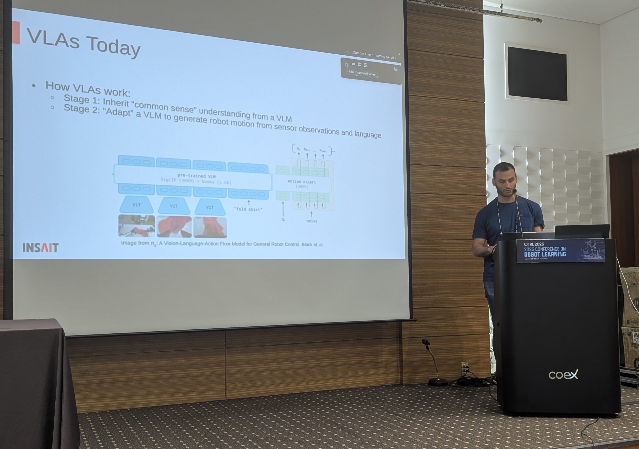 Паралелно INSAIT представи на конференцията CoRL 2025 и разработката MotoVLA, за коята „Аз-буки“ съобщи. Това е нов подход, който позволява на роботите да се учат не само от предварително подготвени данни, но и чрез наблюдение на реалната среда и видео, което отваря път към по-гъвкави и универсални роботизирани системи. Успехът е дело на изследователите Александър Спиридонов, Николай Николов и Джулиано Албанезе, които представиха България на ключовия световен форум.