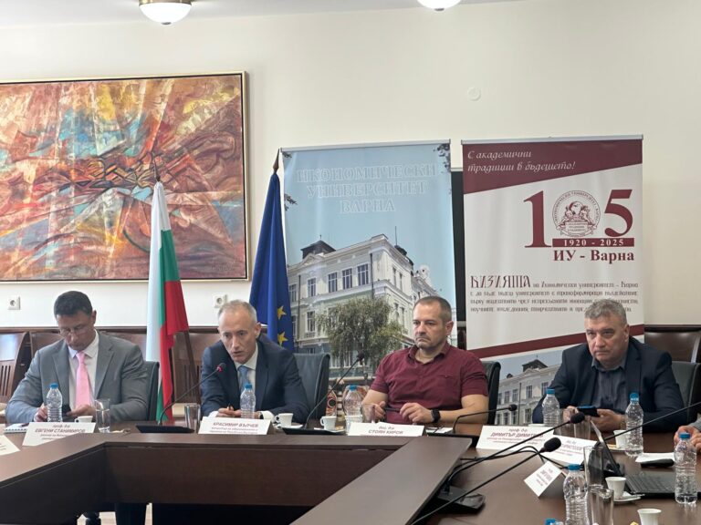 Те представиха анализи, прогнози и перспективи от въвеждането на единната валута в България, а модератор беше ръководителят на катедра „Финанси“ в ИУ – Варна, доц. д-р Стоян Киров.