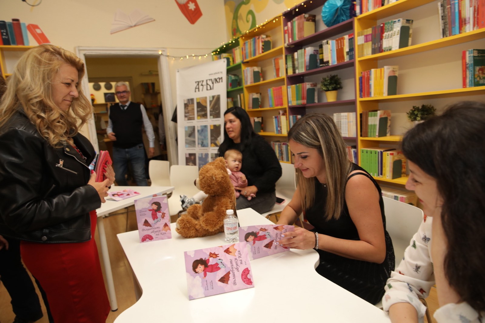 която прочете откъс от книгата и сподели пред многобройната публика защо е подкрепила събитието. В представянето участваха още Емил Спахийски, директор на издателство „Аз-буки“, който беше модератор на събитието, и Борислава Борисова, майка на 6-месечната Тея, родена с еквиноварус.