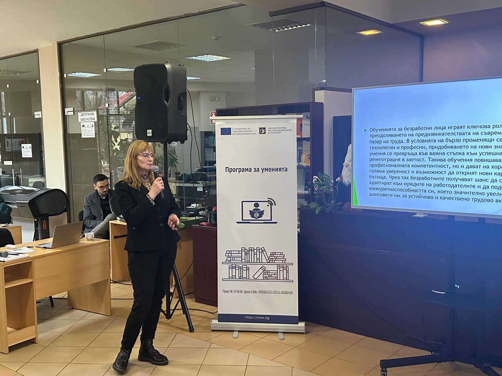Експертите Вилислава Станчева и Ивета Михайлова от Министерството на труда и социалната политика и Мая Тодорова от Бюрото по труда – „Сердика“, представиха политиките по заетостта и обучението на възрастни и дадоха примери за успешна реализация на хора, преминали преквалификация. Тематичните приоритети на Европейската електронна платформа за образование на възрастни (EPALE) бяха представени от експертите от МОН Владимир Врачев и Марио Кушев.