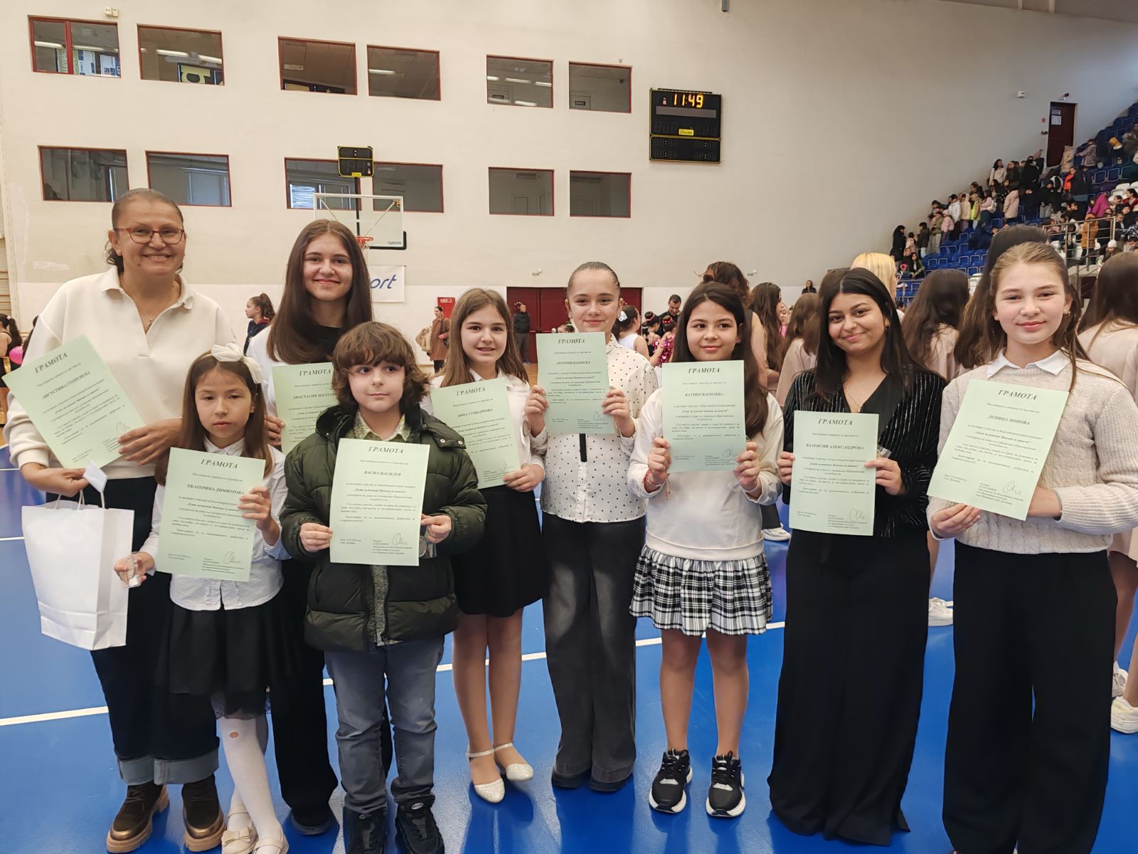 Общо 150 участници и техните ръководители получиха грамоти за участието си, а препълнената зала ги възнагради с продължителни аплодисменти.