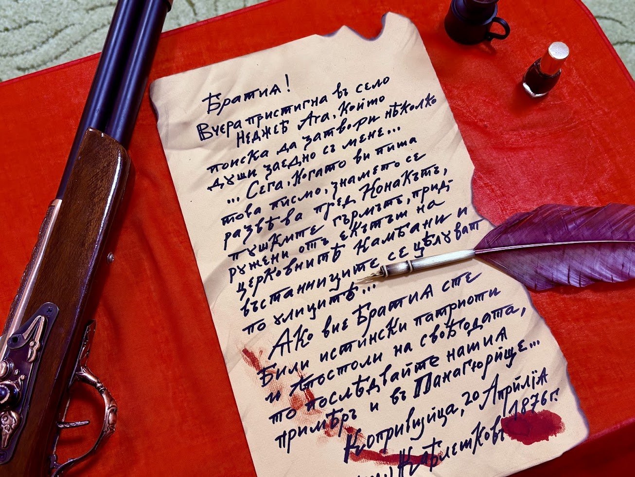 Събитията около избухването на Априлското въстание бяха пресъздадени чрез възстановка от децата от първа група „Барбарони“ и втора група „Мики Маус“ на ЧДГ „Доверие“. Събитието се превърна в своеобразен урок по история и родолюбие. Празничната програма беше подготвена от учителите на групите Ирина Никифорова и Кристина Далева, а музикален ръководител беше Калинка Костова.