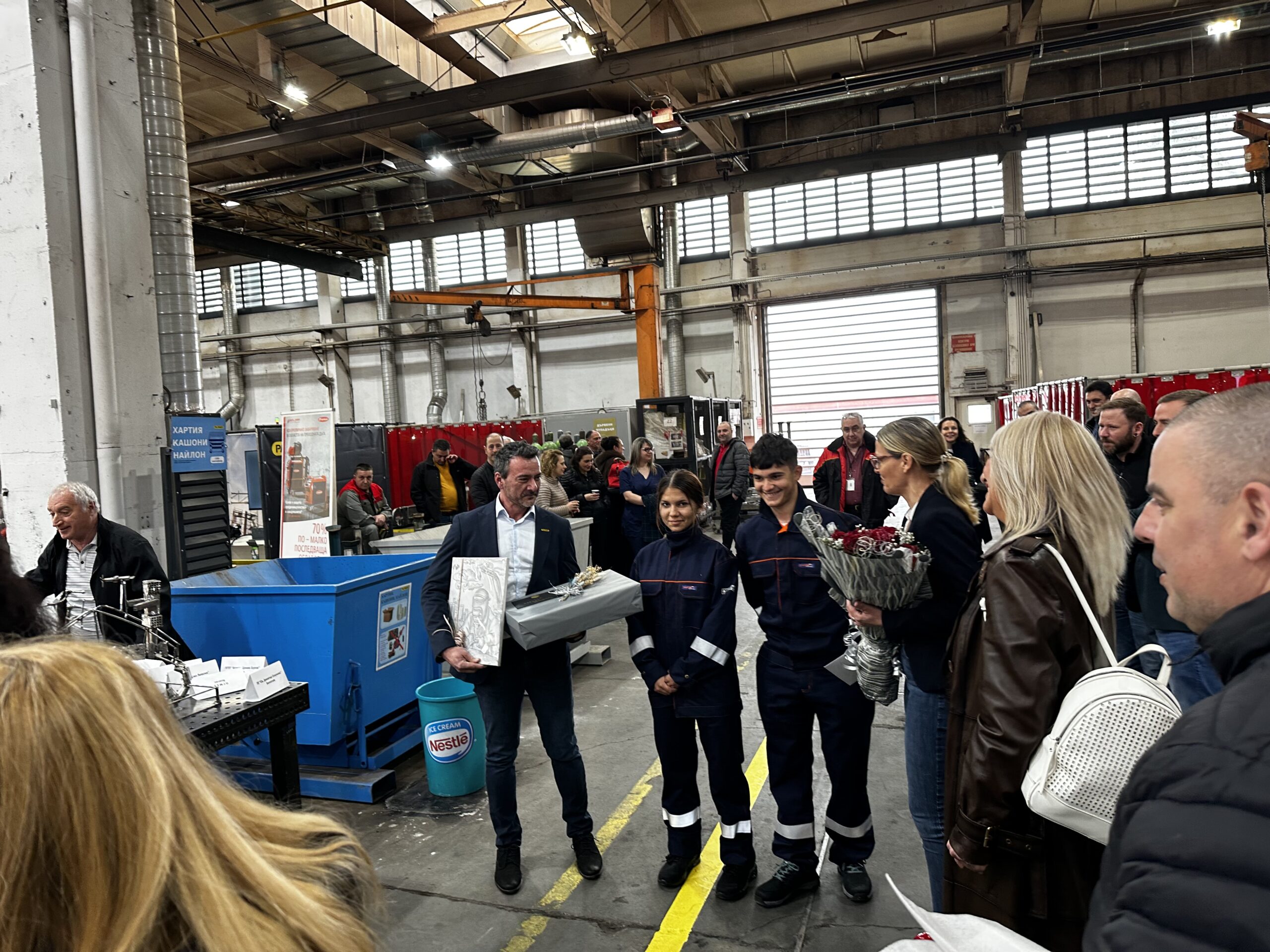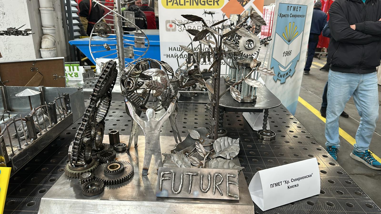 Леон Хадлер, мениджър на „Палфингер Продукционстехник България“ – клон Червен бряг, връчва купата на спечелилата първо място артинсталация „Бъдещето е в нашите ръце“ на ПТГ „Н. Й. Вапцаров“ във Враца. На второ място се нарежда отборът на ПТГ „Иван Райнов“ в Ямбол, а на трето място са домакините от ПГМЕТ „Хр. Смирненски“ в Кнежа.