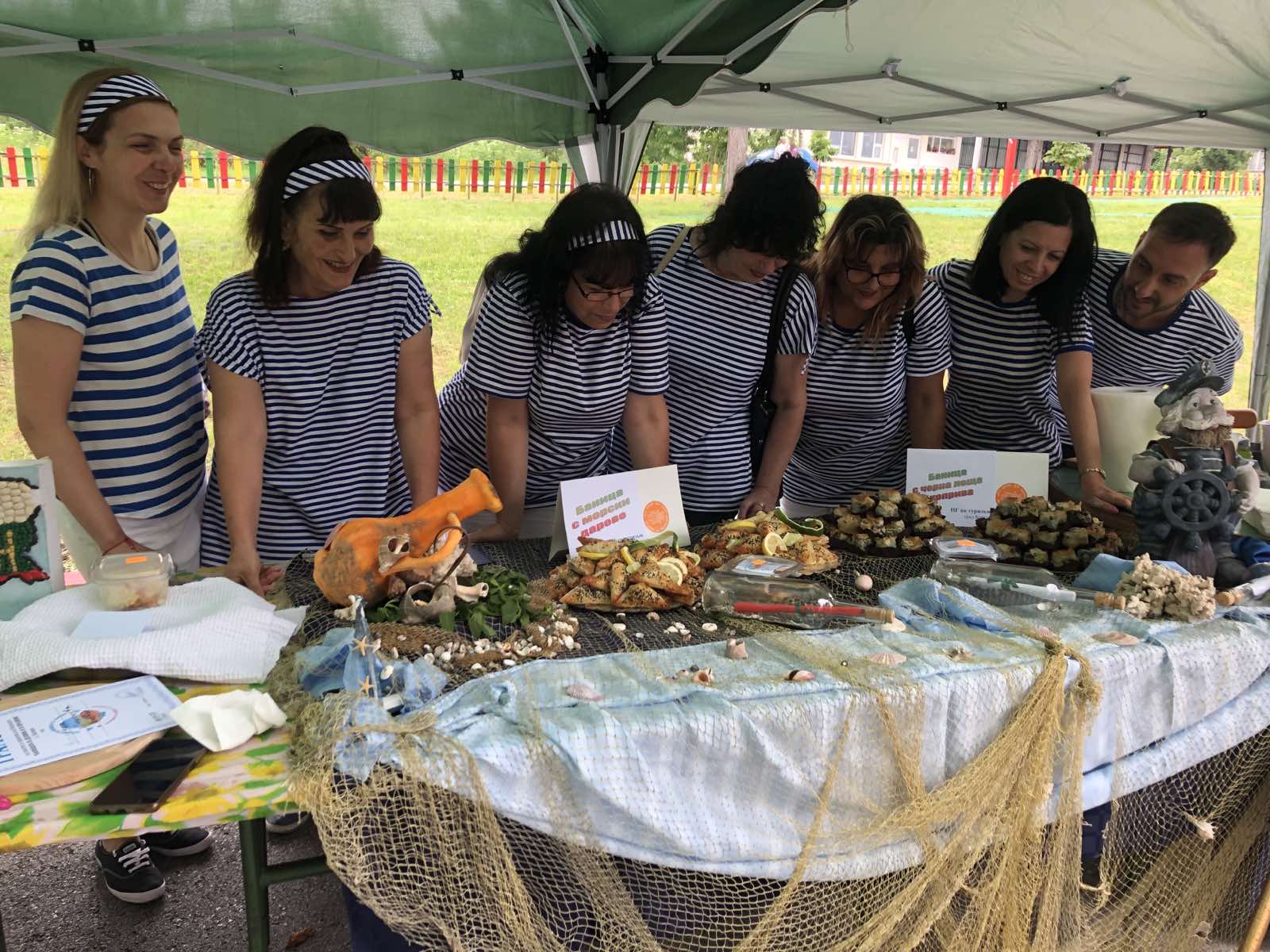 Бургаският отбор – инж. Петя Желязкова, инж. Иван Димов, директорката на гимназията Фотинка Въргова, преподавателите Станислава Тенева, Минка Янева и Ганка Ангелова, изненада участниците в тазгодишното издание на Фестивала не само с кулинарните изделия. Щандът, който подреждат, е във формата на лодка, аранжиран с мрежи и други рибарски атрибути. Вместо обичайното фолклорно облекло те носят моряшки фланелки – още едно доказателство за морския корен на кулинарите.