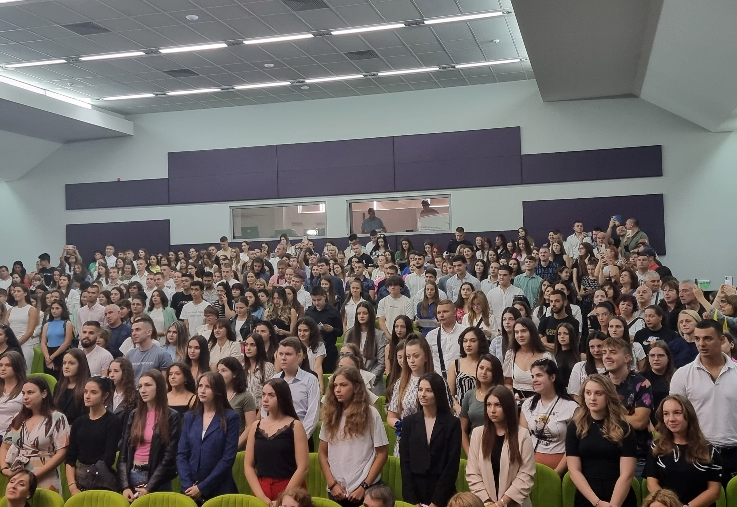 Ректорът проф. д-р Добромир Димитров поздрави новоприетите студенти и връчи студентските книжки на приетите с най-висок бал първокурсници.