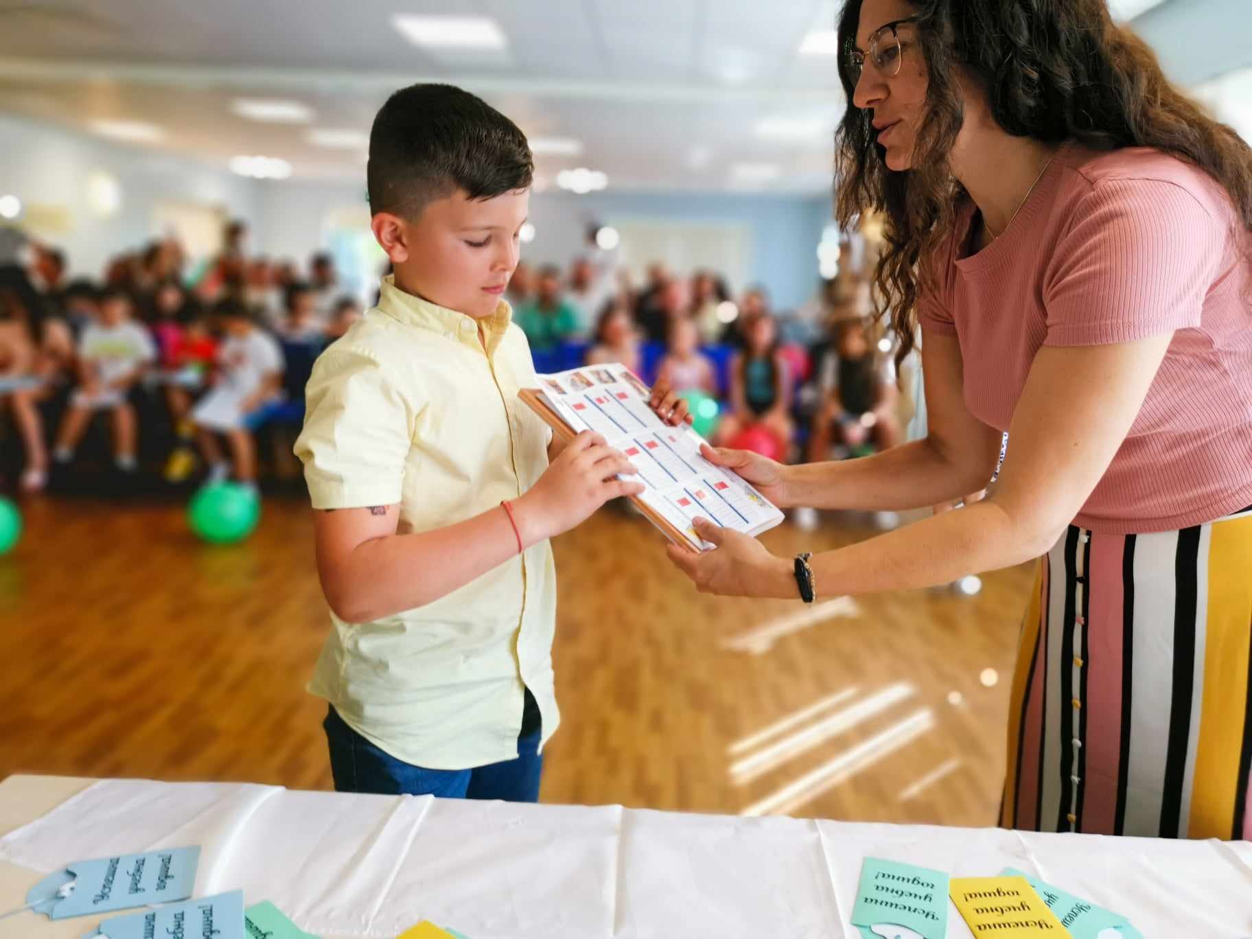 Както всяка друга година, така и тази ученик от по-горен клас предава „ключа на знанието“ на дете, което постъпва в I клас. Така третокласничката Мая посрещна първокласника Кристиян. И за да е успешна новата година, всеки възпитаник си изтегли късмет с пожелание за здраве, щастие и много нови знания.