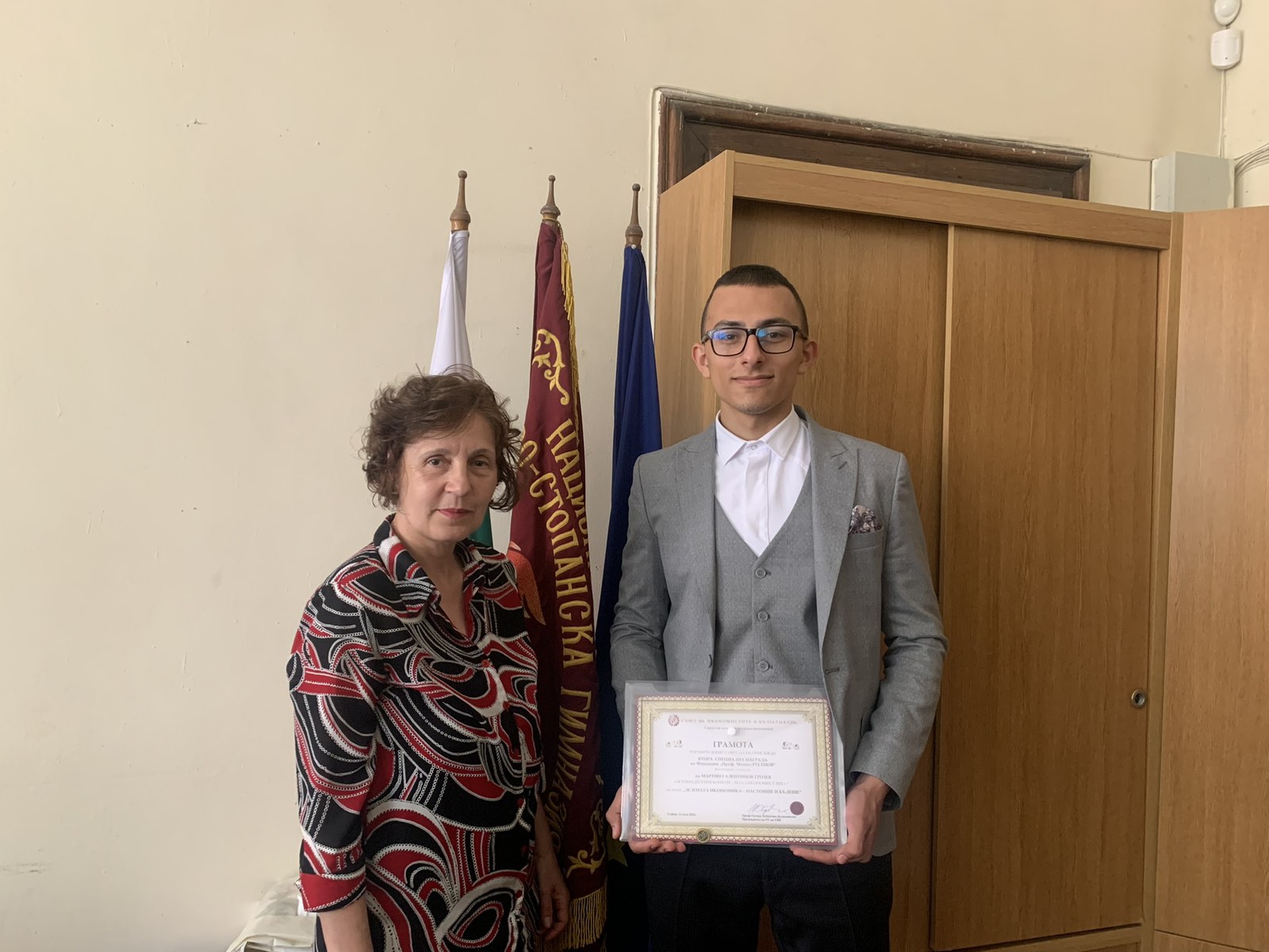„С участието си в състезания всеки ученик иска да разгърне своя потенциал и да спечели отличие, да се срещне с по-трудно препятствие, да излезе от началния тласък, който учителите му дават – посочва младежът. – За мен учителят е човекът, който полага основата на развитието на даден ученик и му помага да намери правилния път, по който да поеме, а след това и да надгражда. Като ученик в НФСГ, под ръководството на моите преподаватели сме завоювали много награди. Тези постижения не биха били възможни без високия професионализъм и подкрепата на учителите ми.“
