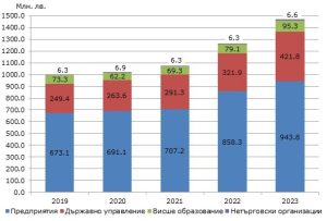 в които се осъществява научноизследователска и развойна дейност. В него са състредоточени 64,3% (943,8 млн.лв.) от общите разходи за НИРД през 2023 г.