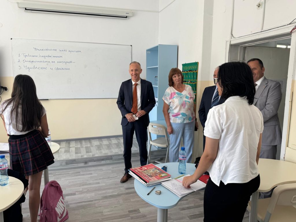 Образователният министър се запозна с дейностите по изграждане на нов STEM център в Националната хуманитарна гимназия „Св. св. Кирил и Методий“ в града заедно с областния управител Георги Динев и началника на Регионалното управление на образованието Ивайло Златанов. Ремонтните дейности вече са приключили и кабинетите могат да приемат ученици, очаква се само доставка на софтуерни продукти за устройствата в него.
