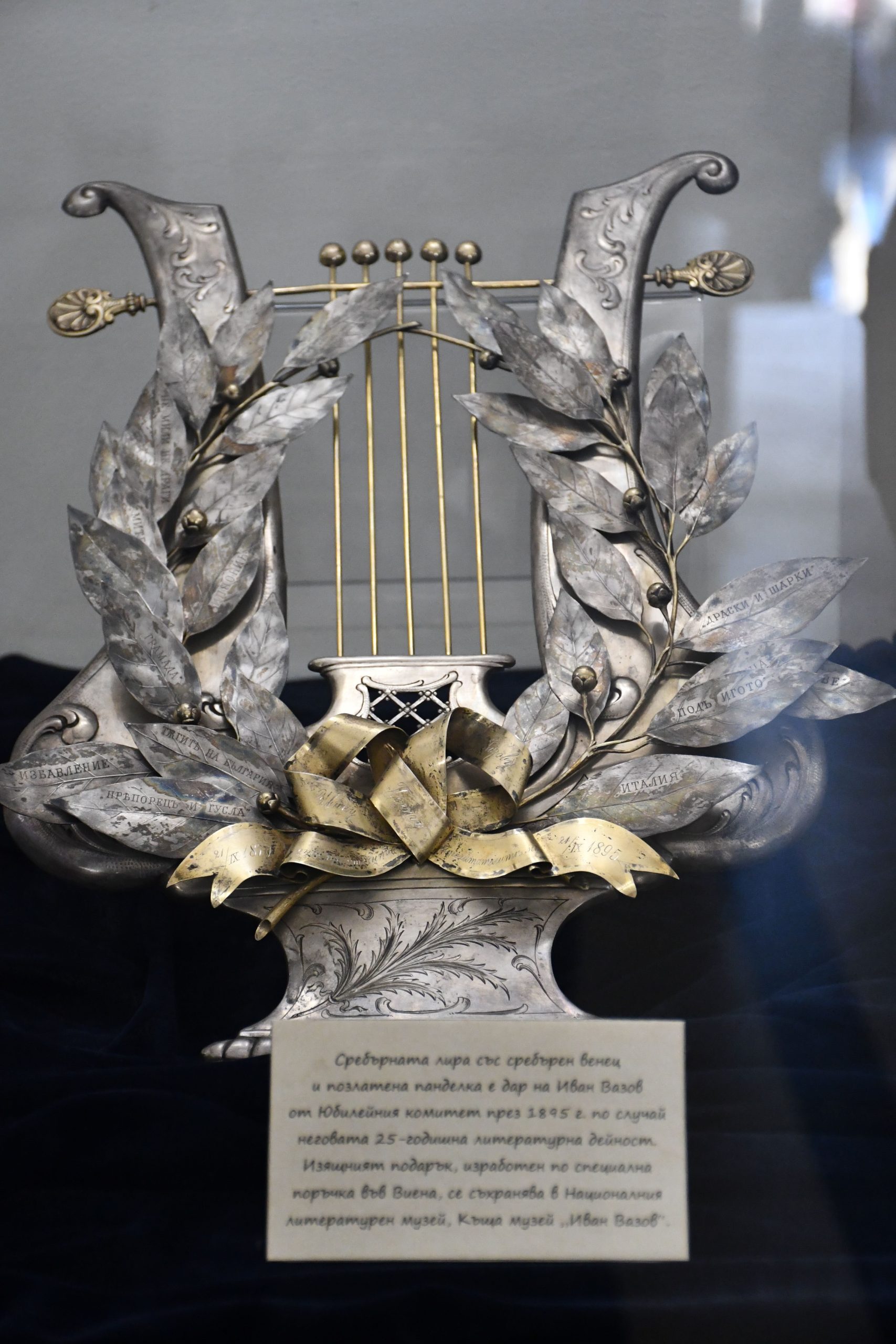 Ценен експонат в изложбата е „Сребърната лира“, дар на Иван Вазов от Юбилейния комитет по случай неговата 25-годишна литературна дейност през 1895 г. Изящният подарък е изработен по специална поръчка във Виена. Върху листенца са изписани заглавията на някои от безсмъртните Вазови творби.