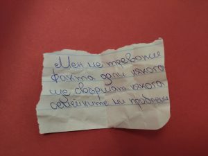 Най-много впечатлява една от бележките, на която пише: „Тревожната мисъл на целия клас е да не забременеете или да не се махнете от училището, докато не станем XII клас“. По този начин някой ученик се осмелява да напише това, от което най-много се страхуват всички, а именно да загубят любимата си учителка.