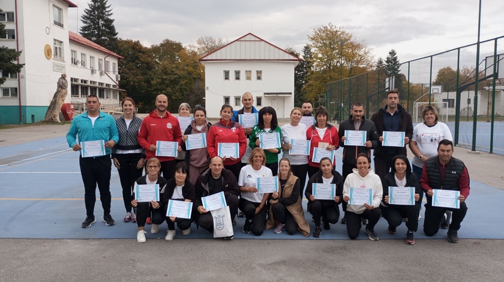 По време на майсторския клас Тонев впечатлява колегите как без наличието на физкултурен салон в ОУ „Иван Вазов“ и само с подръчни материали успява да запали у децата любов към спорта.