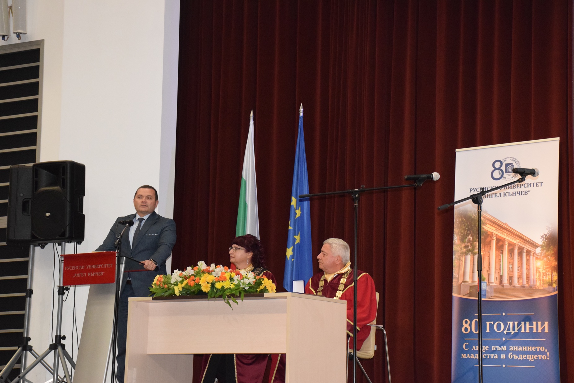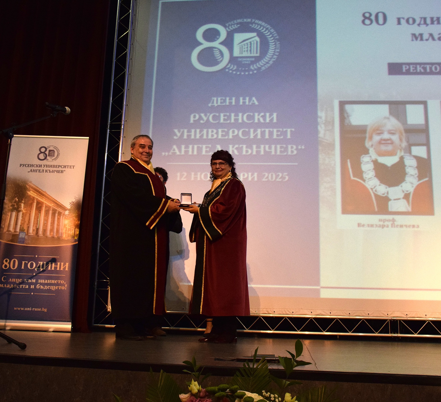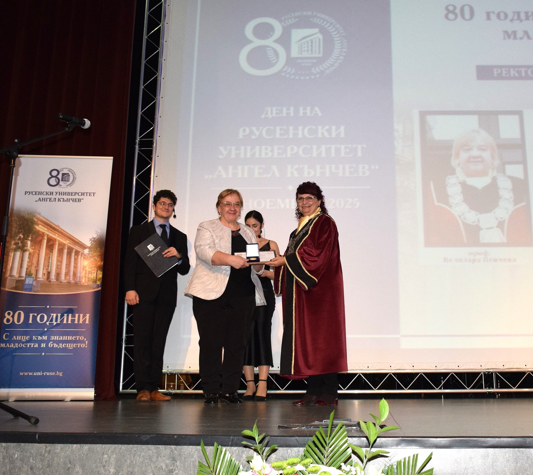 „Отбелязваме не просто 80 години от създаването на нашия университет, а 80 години знание, упорит труд и отдаденост на обществото. Русенският университет винаги е бил двигател на развитието в региона и символ на академичен напредък“, заяви в словото си ректорът на висшето училище доц. д-р Десислава Атанасова.