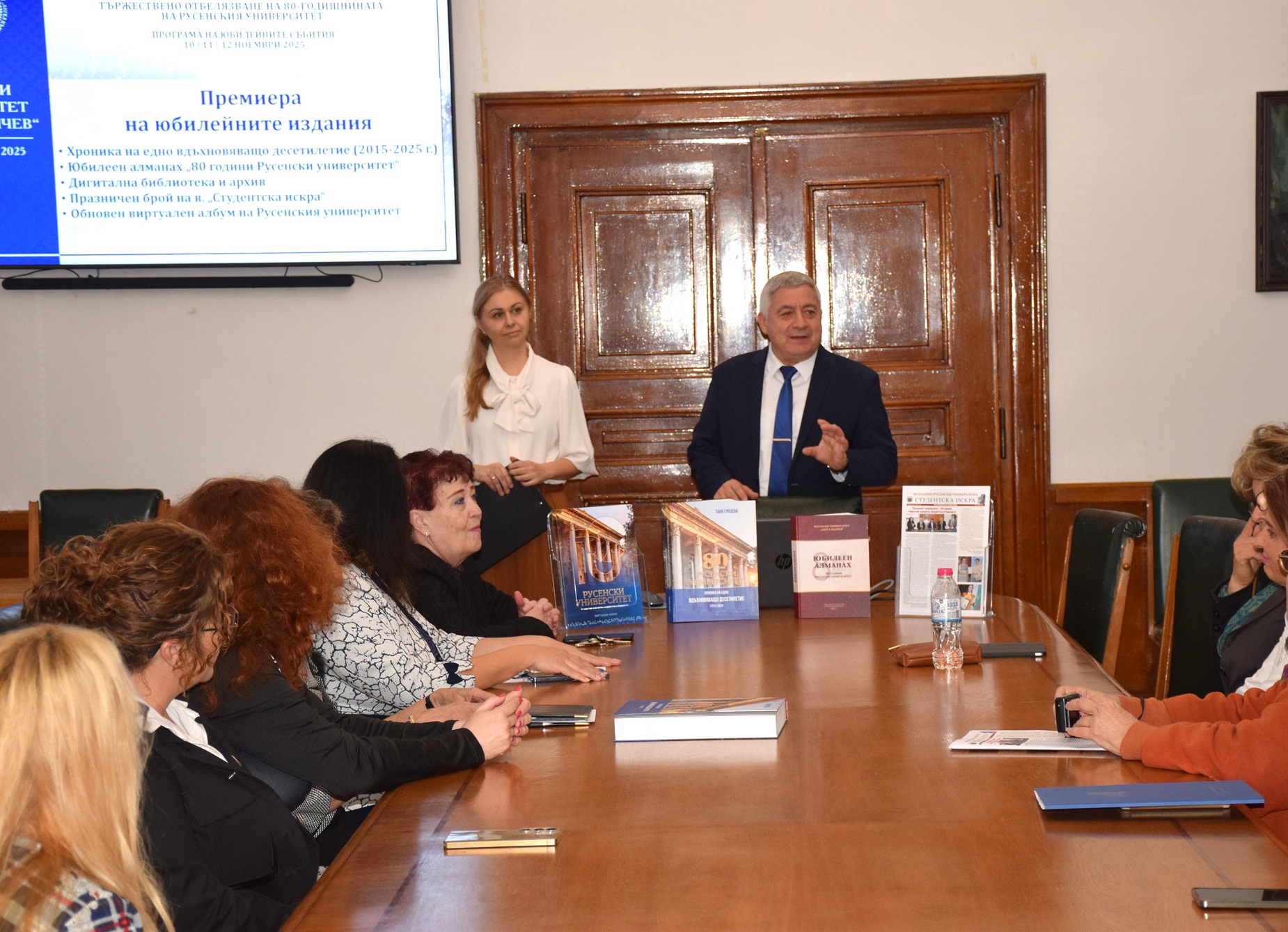 В Заседателната зала на Ректората са представени юбилейните издания,