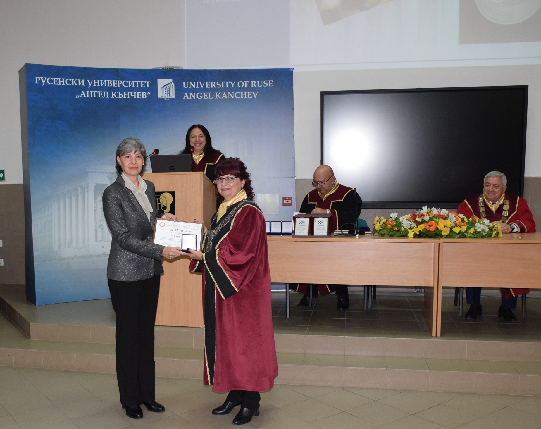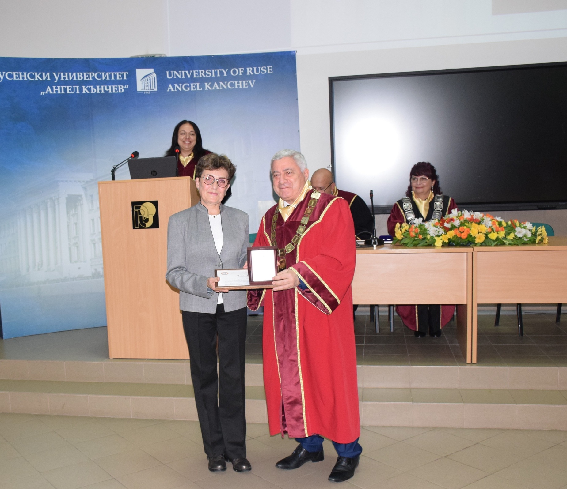 и почетни грамоти са връчени на официалните гости на годишнината. Отличия получават и ректори на Русенския университет с предходни мандати.