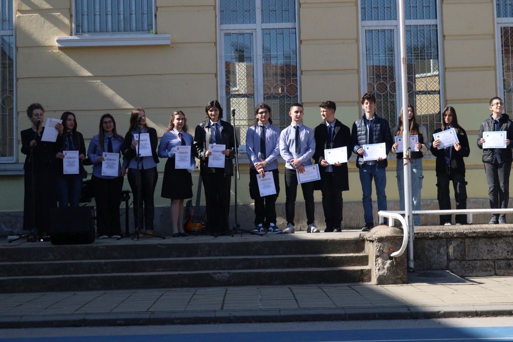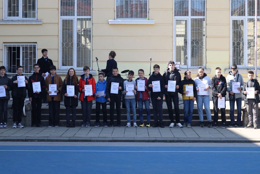 За успехите на гимназията говори и фактът, че тази година двама нейни възпитаници – Тея Чобанова и Венцислав Велев, са удостоени с отличието „Национална диплома“ на МОН. Освен пълни шестици на двата държавни зрелостни изпита те са пълни отличници и през курса на обучение, имат и отлични постижения в национални и международни състезания и олимпиади.