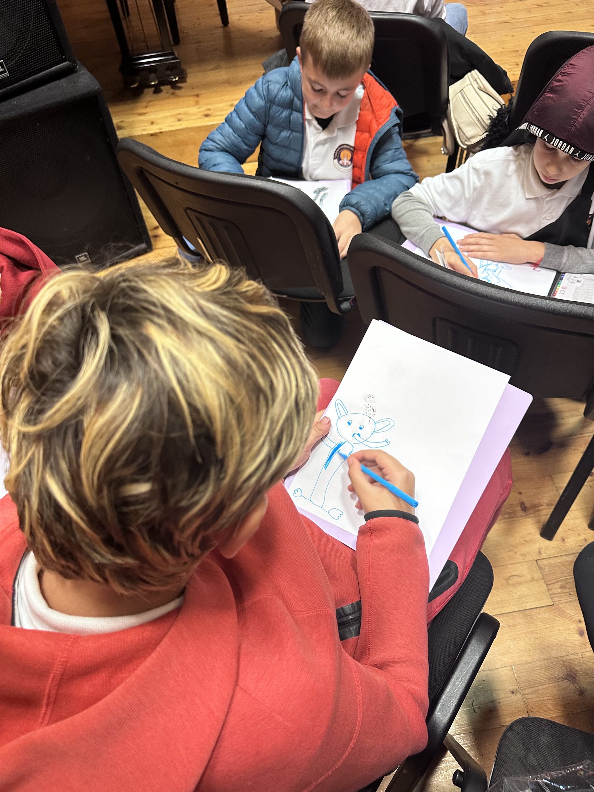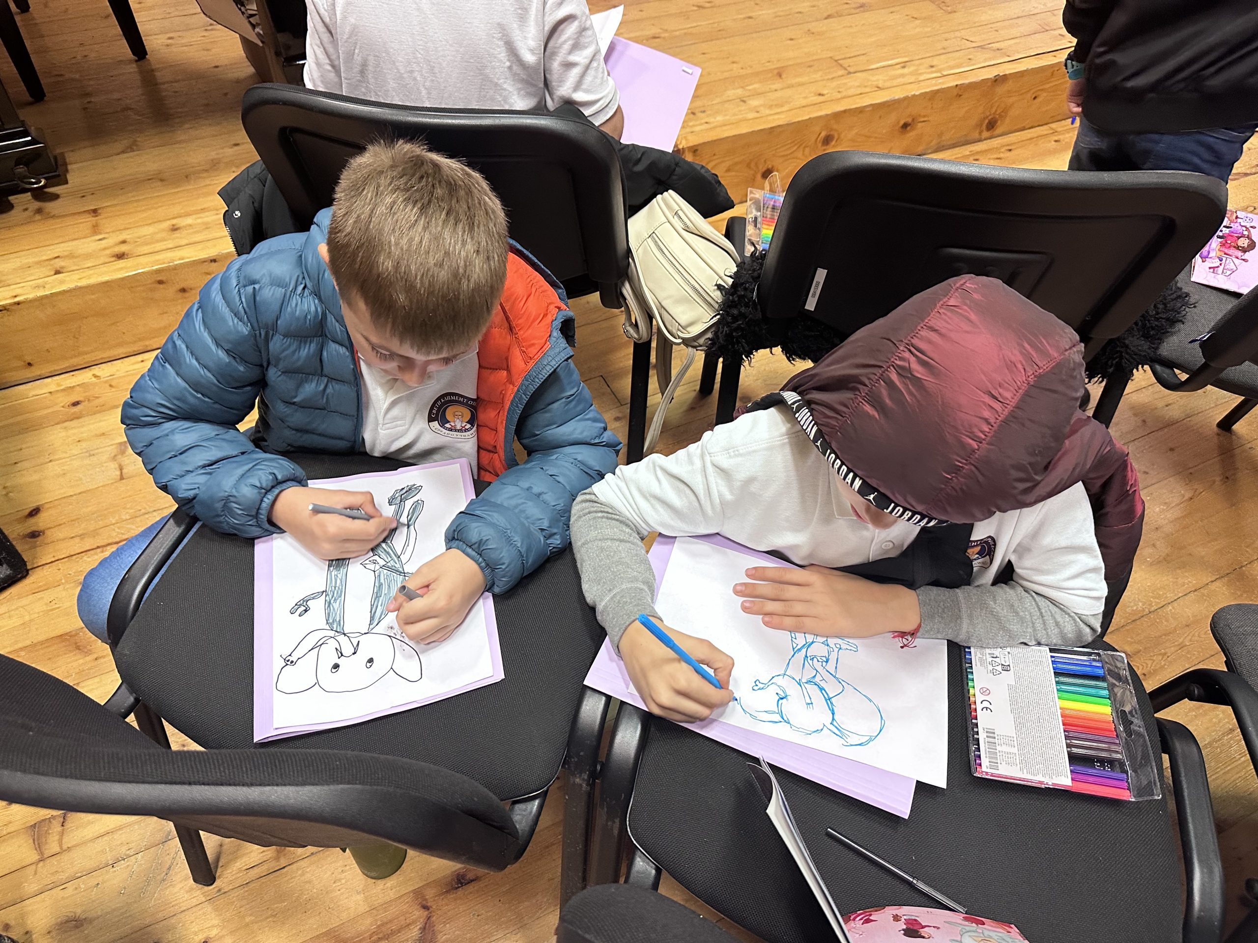 Те се разделиха на два отбора. Единият трябваше да напише кратка история кой е новият спътник в приключенията на Кая и Мечо и къде се срещат. Вторият тим имаше за задача да нарисува новия приятел на смелото момиче и нейния верен другар.