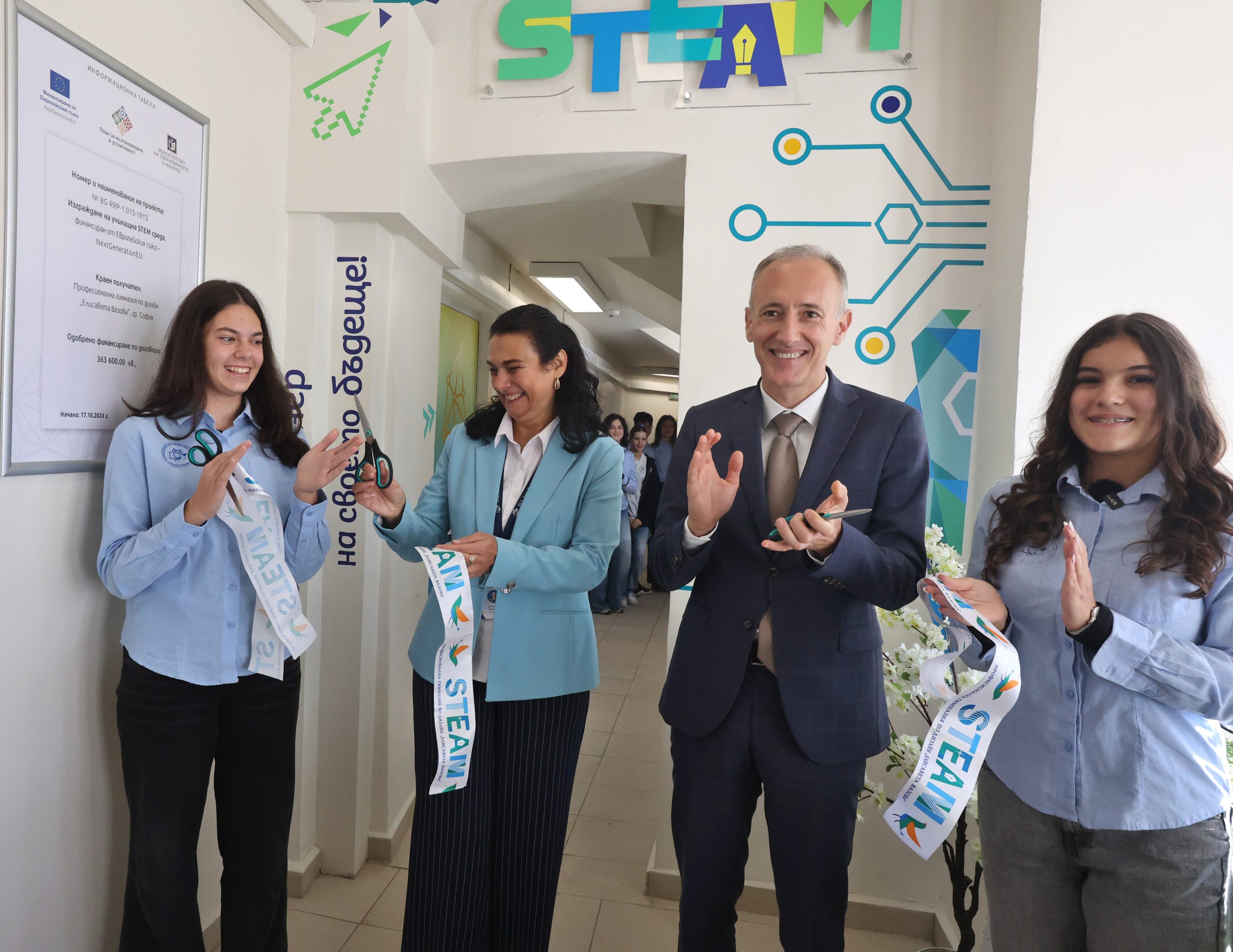 „Радвам се да видя още един реализиран STEM проект в още едно българско училище. От опита на другите училища знаем, че STEM центровете подобряват образователните резултати, както и уменията и мотивацията за учене. Убеден съм, че с новоизградения STEM център ще развиете в по-голяма степен тези най-важни умения, които искаме да дадем на децата“, каза Вълчев. Той поздрави училището и неговия екип за изпълнението на проекта.