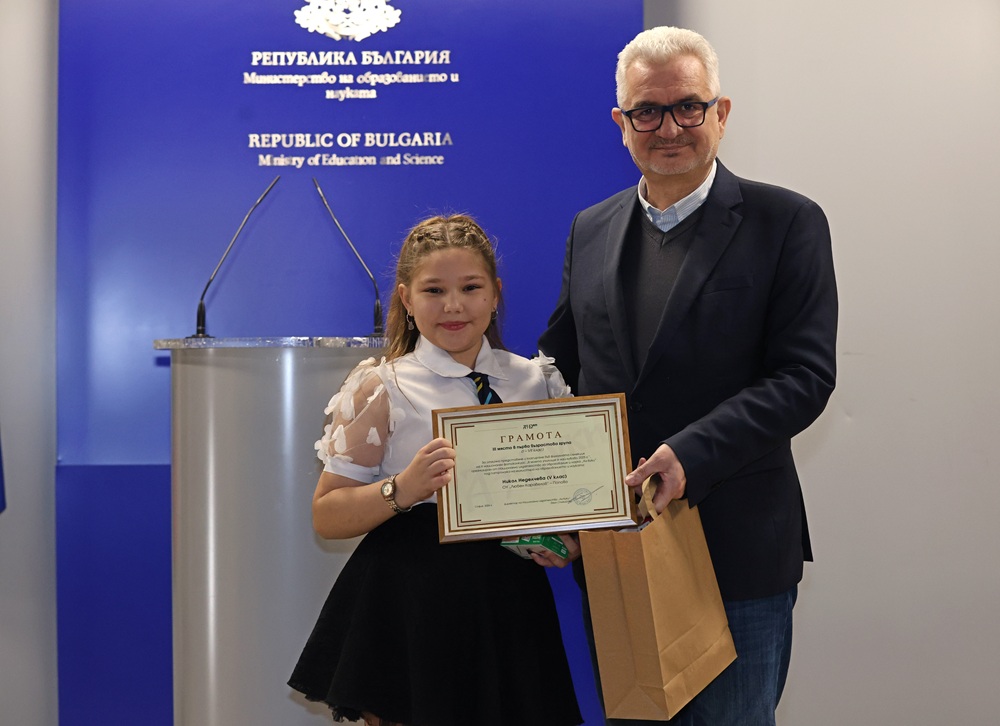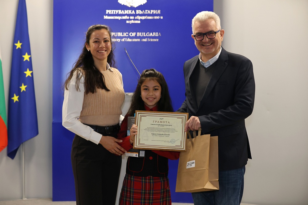 Победителката Михаела Гагова от 119. СУ „Акад. Михаил Арнаудов“ в София бе отличена със смартфон. Заелата второ място Карина Стоянова от бургаското ОУ „Любен Каравелов“ спечели екшън камера. А спечелилата трето място Никол Неделчева от ОУ „Любен Каравелов“ в Попово получи фотоапарат.