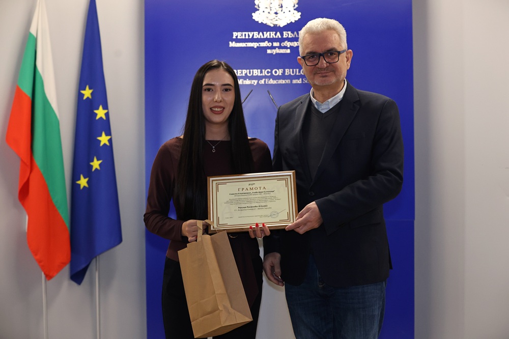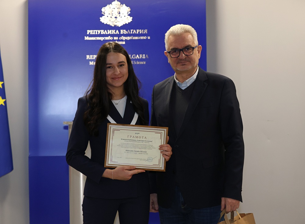 Зам.-министър Лазарова връчи отличията на победителите в трите категории във втора възрастова група (VIII – XII клас) – „Улови мига в училище“, „Героите на моето училище“ и „Снимка с история“.