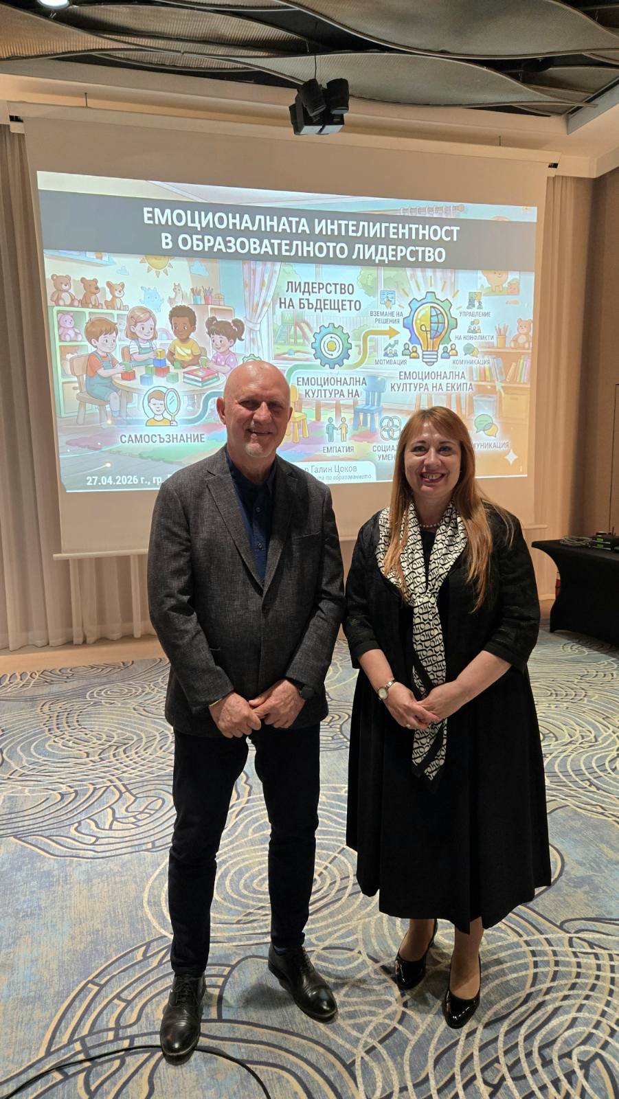 Директорът на Института по образование проф. Галин Цоков акцентира върху концепцията за емоционално интелигентното лидерство, като посочи, че управлението през призмата на емоциите и човешкия подход е това, което трансформира образователната среда в пространство на споделени ценности.