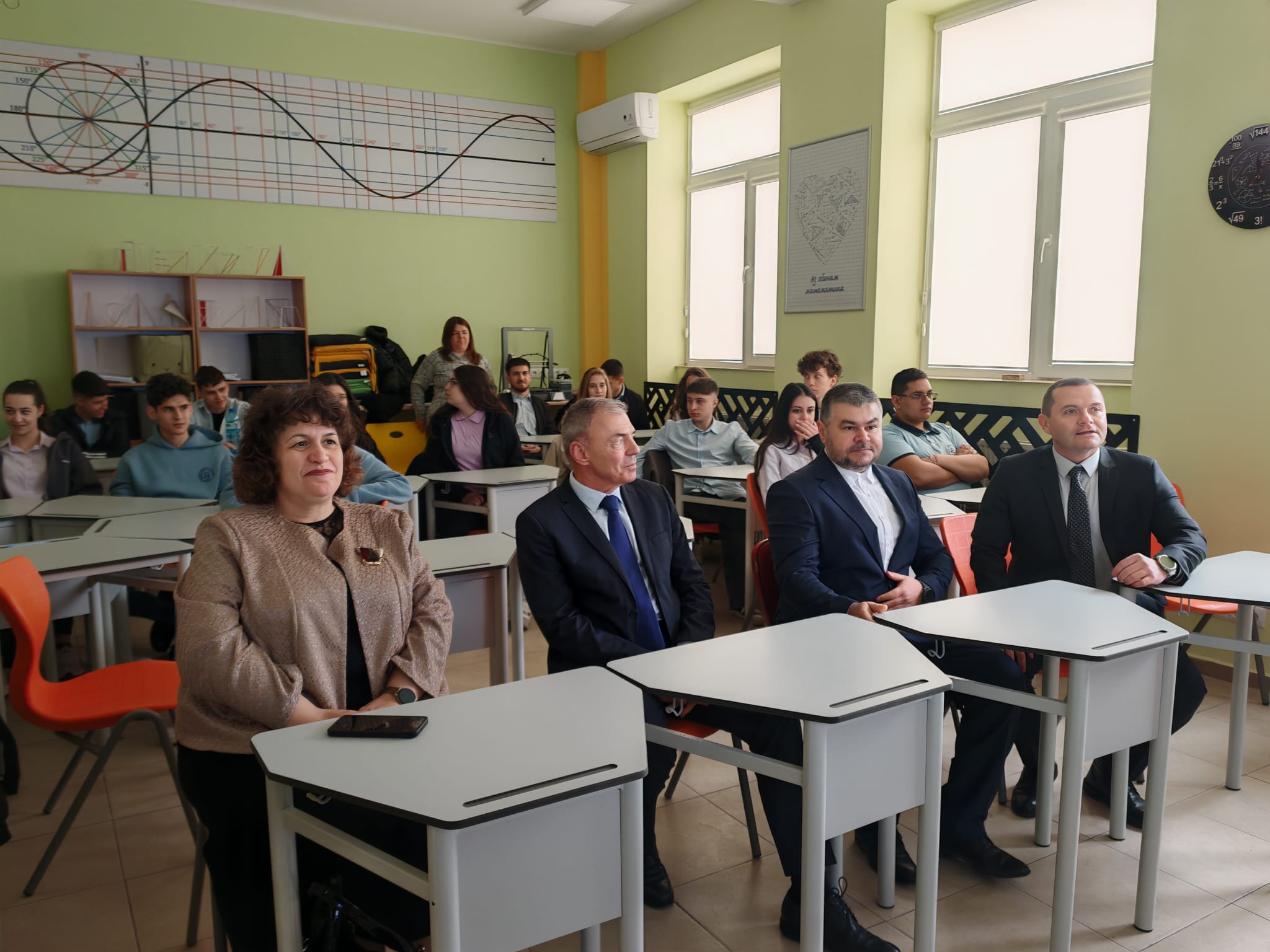 По време на срещата гостите се запознаха и с новоизградените STEM кабинети в направление „Математика и информатика“, както и с част от реновираните учебни стаи в училището.