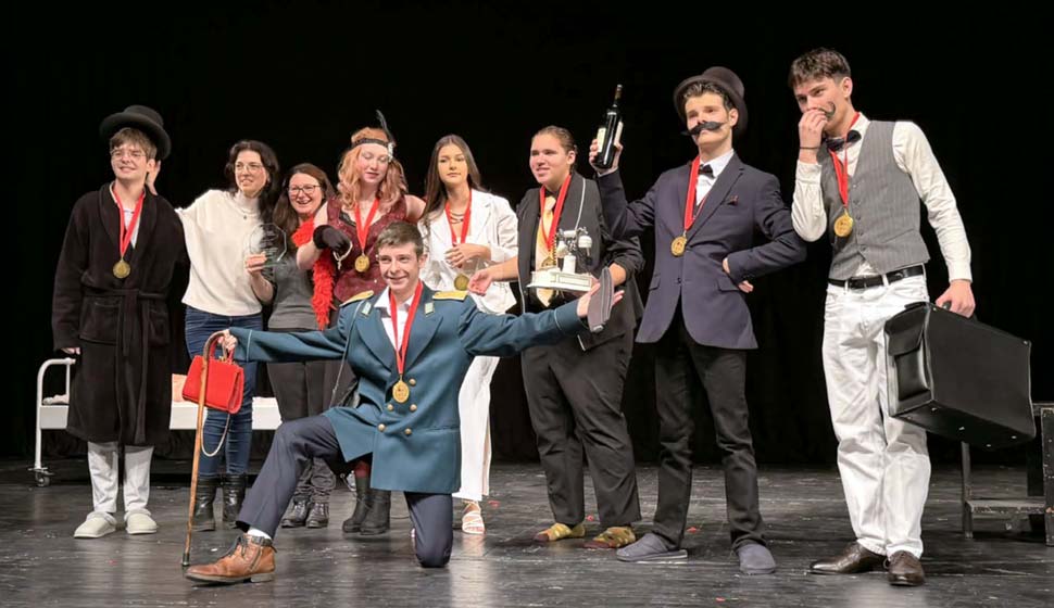 Учениците от Частната профилирана гимназия „Образователни технологии“ печелят адмирации за своята дебютна постановка по мотиви на комедията „Три цилиндъра“ (Tres sombreros de copa) от Мигел Миура и заслужават първата награда в група Б. Ръководените от Ваня Йорданова и Христина Станковска млади артисти са отличени и за най-добро езиково представяне, а Константин Тодоров получава и приз за второстепенна роля.